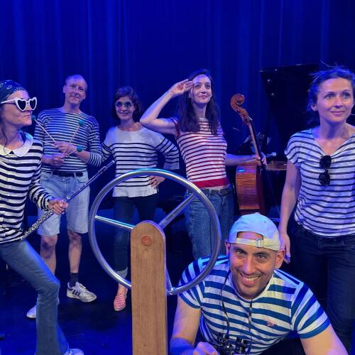 Avec : Caroline Honorat (Flûte), Emilie Jacquin (Clarinette), Camille Renault (Violoncelle), Hélène Desmoulin (Piano), Vincent Mauduit (Percussions). Jeu, écriture et mise en scène : Stanislas Sauphanor